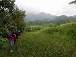 perjalanan kita akan melewati perkampungan warga yang asri, kebun-kebun, areal